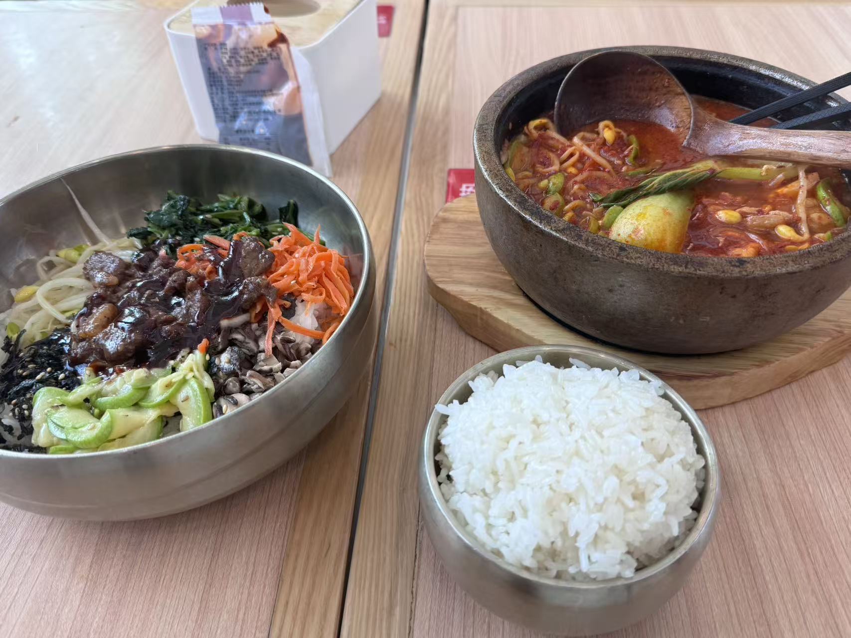 点了碗牛肉拌饭,宝要了一碗大酱汤