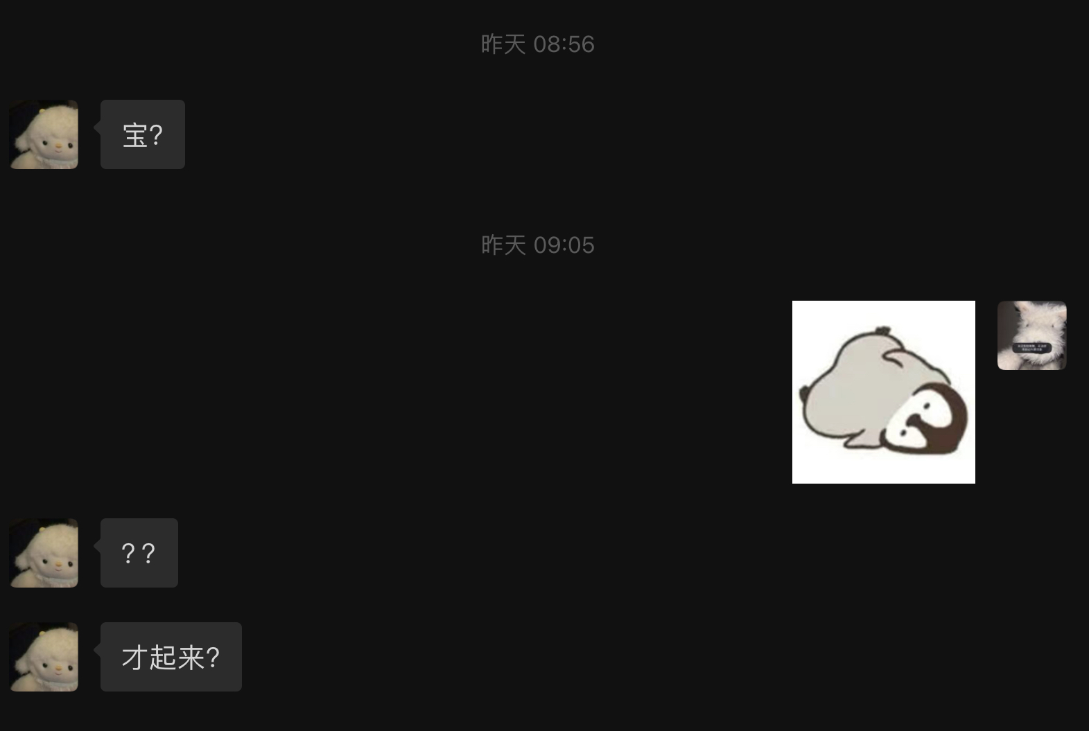 我今天不仅没去吃早餐,还睡过头了,起床已经是九点零五了🕘,然后就看到宝发的消息,那很恐怖了