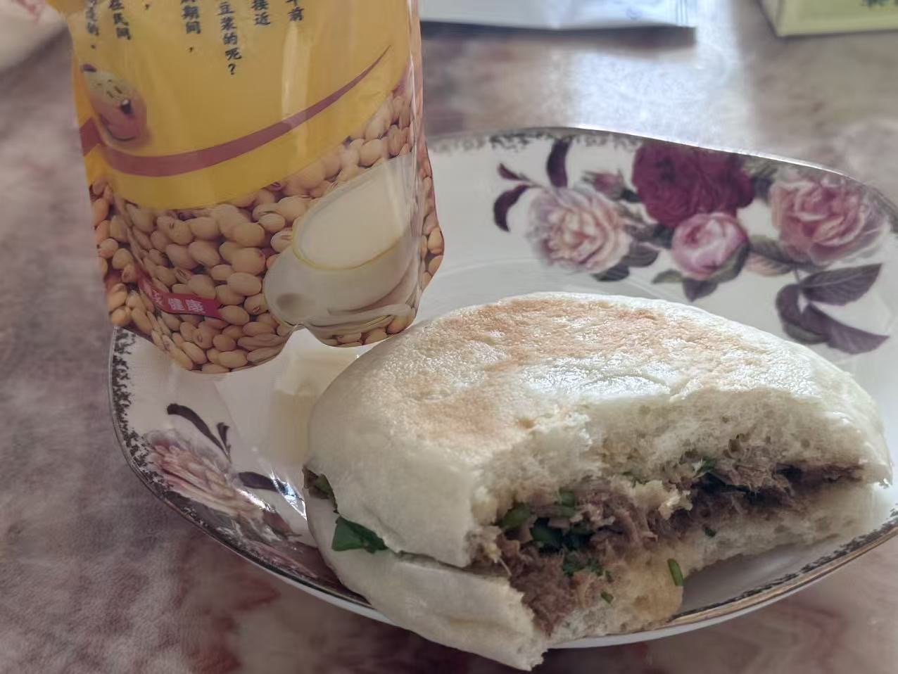 今天早餐吃妈妈做的肉夹馍🥙