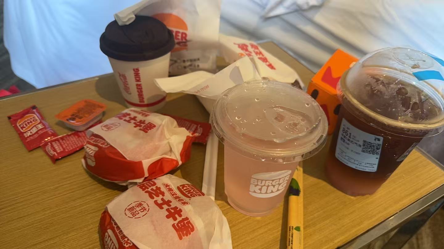和宝吃了汉堡王,宝说她不爱吃洋葱圈