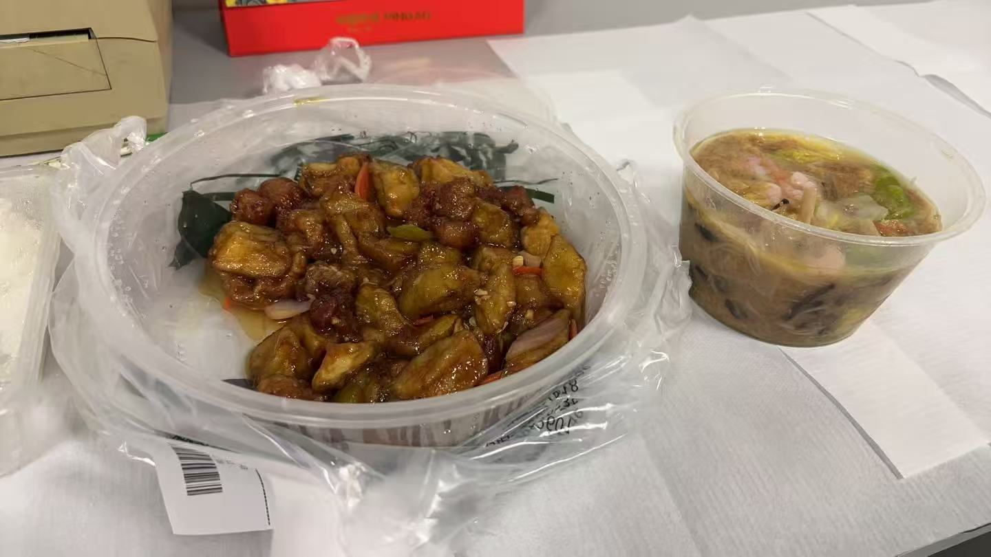 宝给我发了她和老师的午饭,看起来是烧茄子和一碗大乱炖