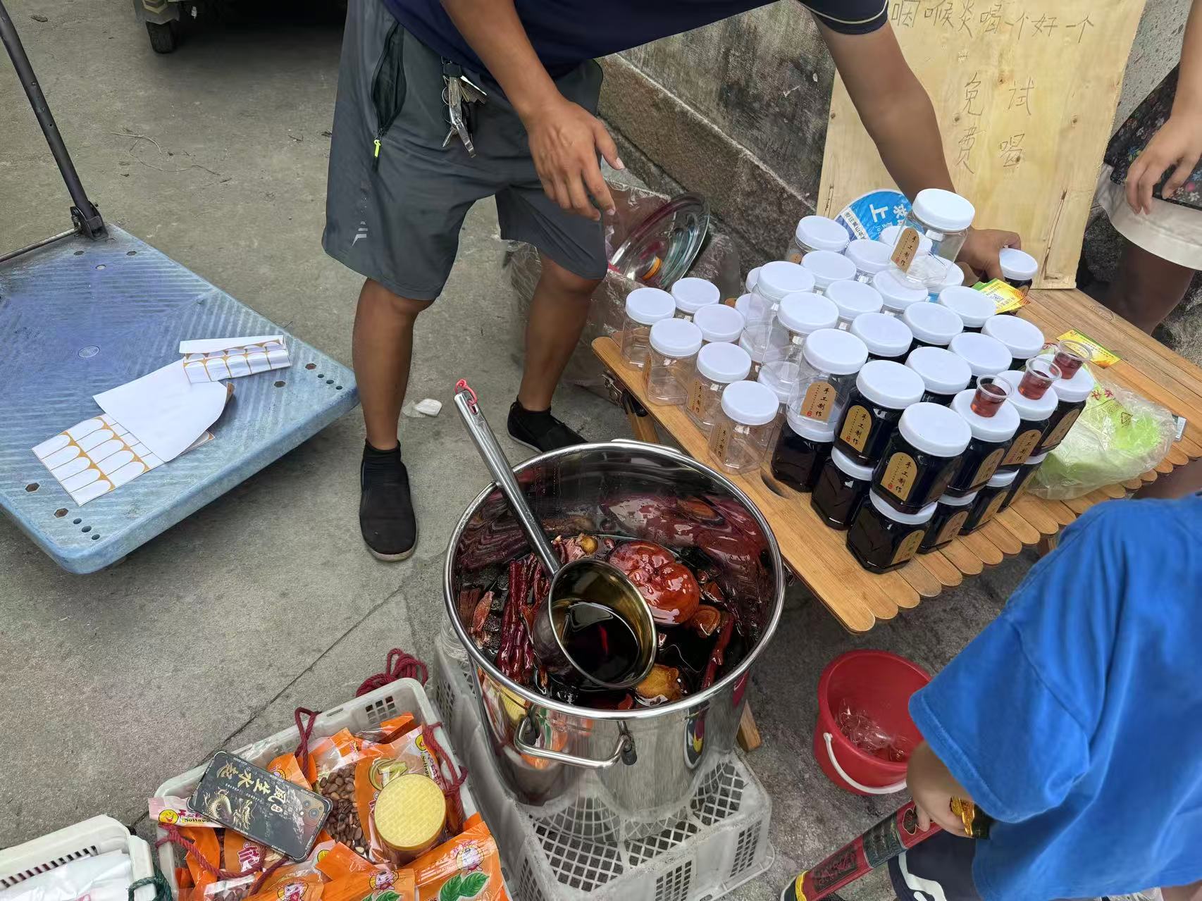 进村子啦,发现了一个卖蜂蜜的大叔,要了一小杯尝尝