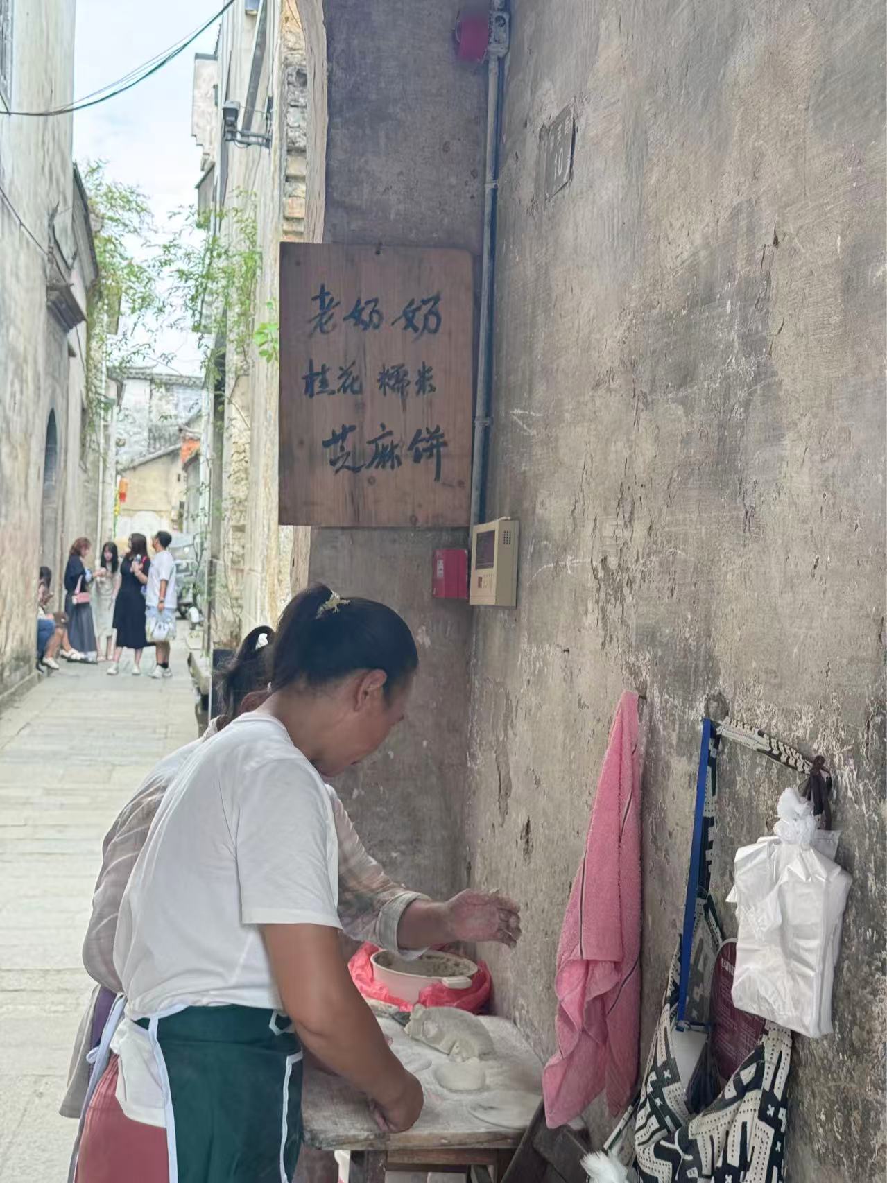 在转角处宝看见了老奶奶卖的芝麻饼想吃