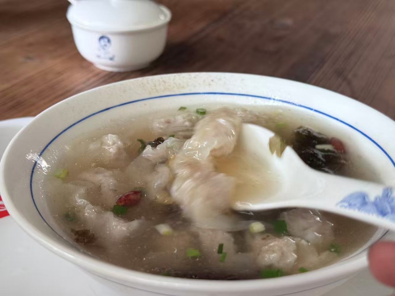 尝了有名的汪一挑混沌,顾名思义他真的就是有一挑,面片汤一样